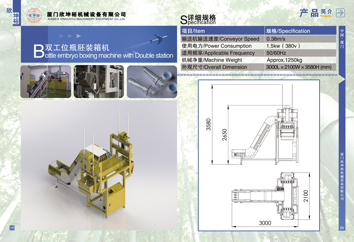 綜上所述,雙工位瓶胚裝箱機(jī)的安裝方法涉及多個環(huán)節(jié)和步驟,需要嚴(yán)格遵守安裝規(guī)范和操作要求。通過正確的安裝方法和注意事項(xiàng),可以確保設(shè)備的正常運(yùn)行和發(fā)揮最大效能,為塑料瓶制造行業(yè)的高效生產(chǎn)提供有力保障。